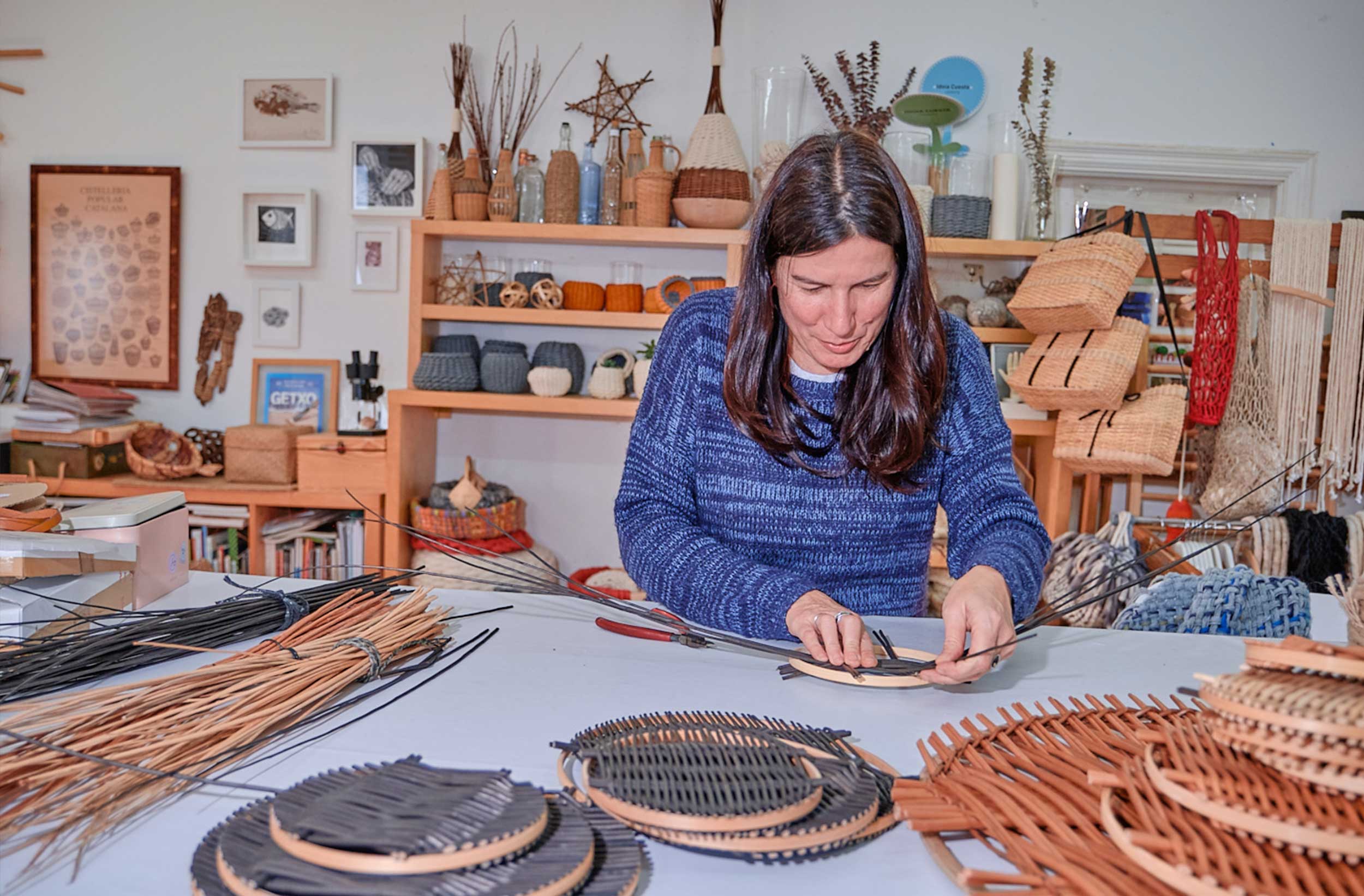 Con su trabajo está llevando la tradición artesana de la cestería a nuevos niveles explorando técnicas y utilizando tejidos de todo tipo que consiguen originalidad en cada una de las piezas.